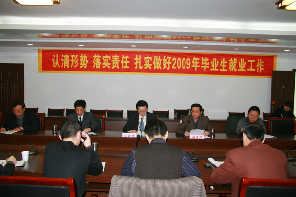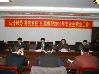 面对当前严峻形势,为做好我院2009年毕业生就业工作,4月10日,我院召开2009年毕业生就业工作第二次会议。院毕业生就业工作领导小组全体成员、系部主任以及分管就业工作的行管干部参加会议。会议由副院长毕明生主持。 会上,副院长施运华传达了3月27日省政府召开的全省普通高校毕业生就业工作电视电话会议和4月2日国务院召开的全国普通高校毕业生就业工作电视电话会议的主要内容,带领与会人员学习、领会中共中央政治局委员、国务院副总理张德江和省教育厅厅长程艺在会上的讲话精神,并就近期就业工作提出要求。招生就业处负责人通报了我院2009年毕业生就业情况,并分析了当前就业工作存在的问题和困难,安排了近期就业工作。院财务处、教务处、学生处(团委)、总务处等部门负责人也就近期学生返校事宜做出安排。 院长孙晓峰作重要讲话。他指出,这次会议,既是一次常规性的就业工作会议,更是一次积极应对挑战,全力推进我院毕业生充分就业的再动员大会,是在非常时期召开的一次非常重要的会议。各部门要加大工作力度,扎实做好我院毕业生就业工作。一要认清形势,坚定战胜困难的必胜信心。今年的就业工作,形势更加严峻,任务更加艰巨,政策更加积极,党和政府对高校毕业生就业工作的重视程度前所未有,政策出台的频度之高、力度之大更是前所未有。要坚定信心,从深入贯彻落实科学发展观、坚持以人为本的高度,抓好学院的这项“民生工程”,全力促进毕业生顺利就业。二要全力以赴,统筹推进,促进毕业生多就业、就好业。今年提出的目标是力争毕业生初次就业率超过70%。实现这一目标,要积极引导毕业生树立正确的就业观,合理定位,勇于到基层去就业;教务部门要研究专业调整和课程设置问题,要切实提高学生的实践动手能力和就业能力;要整合多方资源,拓宽就业渠道;要抓自主创业,把扶持毕业生创业作为促进就业的重要手段。三要落实责任,确保各项工作扎实有效推进。领导要重视,要切实落实“一把手”工程责任(系部主任要与院长签订《就业工作责任书》);各系部要在本月底前建立起本系部就业工作“台帐”,明确和落实每一位毕业生就业的“联系人”和“责任人”;要按照省教育厅要求,坚持每半月上报一次就业统计报表;要将就业工作经费、有关岗位津贴、通讯补助与就业工作实绩挂起钩来,并加强工作考核;宣传要加强,要把党和政府的好政策有效传递到每一个毕业生,扎实做好2009年毕业生就业工作。 (文/张铮 图/杨元纲)