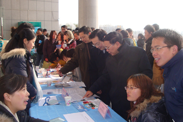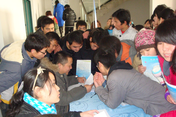 火爆的招聘会现场 院长、院毕业生就业工作领导小组组长孙晓峰教授在开幕式上对参会企业表示热烈欢迎和衷心感谢,他介绍了当前就业形势以及学院近几年的就业工作情况,并对2010届毕业生提出了殷切希望。他要求,毕业生要调整好应聘和就业心态,从基层做起,树立正确的就业观和职业观,投身社会,将学到的知识和技能运用到实践中去,和企业同呼吸,共命运,奉献青春,实现自我价值,为母校增光添彩。 施运华副院长在接受媒体采访中谈到,本次招聘会是我院首次大型校园招聘会,是学院认真贯彻落实2009年全国毕业生就业工作会议精神的重要举措,是学院关心全体毕业生、加强对毕业生就业工作的领导、努力开辟就业市场的又一次成功实践。招聘会呈现出了参加单位多、岗位需求量大等特点,用人单位十分看好我院的毕业生,部分专业出现了供不应求的状况。下一步,学院将在政府及社会各界的大力支持下,继续秉承以服务为宗旨,以就业为导向的办学理念,积极把握就业主流市场的需求变化,不断创新就业工作思路,扎实细致地做好毕业生就业工作。 |