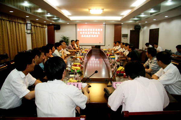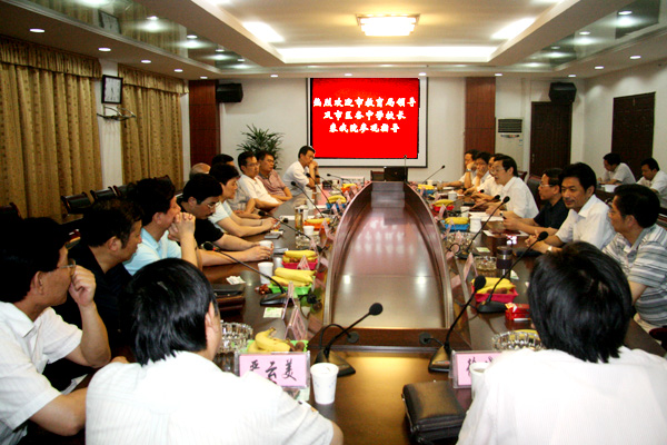 为促进和加强我市高职教育与中学基础教育的交流与合作,推动高职教育更好地为安庆地方经济社会发展服务,7月9日下午,我院举行与安庆市属各中学合作交流会。市教育局局长童学军,市委教育工委书记、副局长陈云,安庆一中、二中、三中、五中、七中、九中、十一中,石化一中,杨桥中学,广圩中学校长,院领导江洪、孙晓峰、张旺牛、余祖文、施运华、毕明生出席交流会。院办公室、教务处、招就处、社会事业系负责同志参加了交流会。