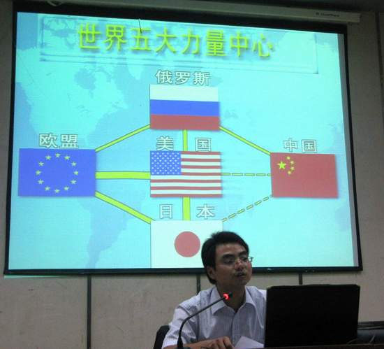 9月14日晚,李三平老师作《国际战略环境》专题军事讲座,正在参加军训的我院六百余名新生聆听了报告。 李老师介绍了国际战略的基本含义以及当今国际战略格局的基本特点,说明世界安全形势不容乐观,恐怖主义对国际社会的威胁依然严重,和平与发展的时代主题仍未改变,世界格局多极化是大势所趋。他重点分析了我国周边安全环境,并结合钓鱼岛等热点问题提出了自己的看法。 李老师对国际战略环境的分析评述,使同学们认识到世界安全形势以及我国周边安全环境的复杂性,增强了同学们的国防意识,激发了同学们的爱国热情。