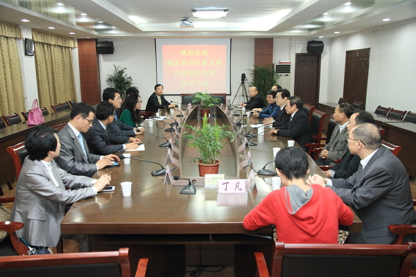 院领导会见韩瑞大学客人 双方就留学生互派、教师学习进修、文化交流等合作事项进行了磋商,表示要密切互访、加强互信,进一步加强深度合作交流,为促进中韩贸易发展、增进两国友谊做出更大努力。 交流会后,济州汉拿大学、韩瑞大学分别举行了留学说明会,就相关专业课程设置、就业前景、资费问题、留学申请程序与同学们进行了现场交流。