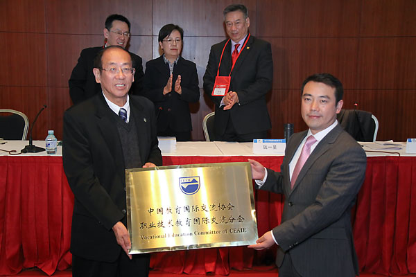 会议还举行了职教分会授牌仪式。在鲁昕副部长等出席大会的领导和代表的见证下,交流协会钱一呈副会长向职教分会理事长孙爱武授牌。 11月2日和3日,我院代表还参加了2013中国国际教育年会项目洽谈会的高职院校专场,与美国、加拿大、澳大利亚、新西兰、德国、俄罗斯、意大利等多个国家的院校及教育机构进行了深入的交流,并就合作办学达成多项初步意向,取得了丰硕成果,为我院提高办学质量和水平起到了积极的推动作用。(文/郑礼常 图/陶宜生)