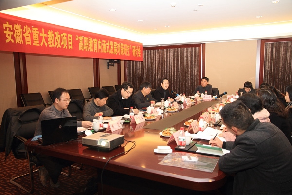 会上,石伟平教授、叶鉴铭研究员先后做主题报告。石伟平教授在题为《当前我国高职教育内涵式发展的若干问题》的主题报告中,对当前我国高职教育专业建设、课程建设、师资队伍建设等方面内容进行了全面深刻的阐述,并重点就高职院校如何推进产教融合校企合作、如何服务现代农业发展、如何服务新型城镇化等问题高屋建瓴地进行了分析,同时提出了明确的发展路径建议。 叶鉴铭研究员则以《校企共同体的理论与实践》为题,既从理论层面对校企共同体的基本内涵和内在本质进行系统阐述,又从实践层面详细介绍杭州职业技术学院友嘉机电学院、达利女装学院等6个校企共同体建设的不同做法与探索成效。 在主题报告之后,石伟平教授和叶鉴铭研究员还就该项目研究过程中一些需要重点把握和关注的细节问题与项目团队成员进行了探讨与交流,并对项目实施提出了很多针对性极强的指导意见。两位专家还鼓励项目团队,要立足工作实践,强化团队协作,力争高质量地完成项目研究任务,并尽可能多地提出有价值的对策建议。 孙晓峰院长希望课题组成员加强协作,精诚合作,大胆创新,认真学习领会两位专家主题报告体现出来的职教先进思想理念,以及在互动交流中对项目研究提出的指导性建议,扎实、深入、有效地开展研究,在研究中提升能力、提振职业教育改革发展的信心,在研究中收获友谊、收获职业教育改革发展的希望。 据了解,该项目由我院吴一鸣老师联合安徽水利水电职业技术学院、安徽职业技术学院、芜湖职业技术学院、安徽财贸职业学院、铜陵职业技术学院、安徽电气工程职业技术学院和我院等7所院校老师,以及安庆市教育局、安庆开发区、安徽材料工程学校、安徽青园集团等政府部门、中职学校、企业相关研究人员共同申报,经安徽省示范性高职院校合作委员会推荐,于2013年10月获省教育厅、财政厅批准立项,预计在2015年底完成。(文/何玉红、闻胜海 图/闻胜海)