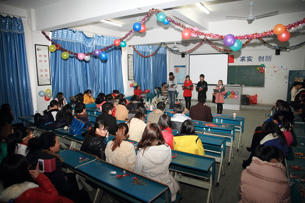 在动感的音乐节奏中,由舞协带来的活力四射的街舞拉开了联欢会的序幕。晚会共13个节目,融歌曲、舞蹈、小品、朗诵等多种节目形式为一体,精彩纷呈。 方葆青、储可可、叶玫老师分别演唱了《呼伦贝尔大草原》、《传奇》、《My love》,博得了全场的热烈掌声。朱灿、国风等同学的小品《大话刺秦》表演活灵活现,诙谐幽默,赢得了满堂喝彩。联欢会在外教老师Desy演唱的经典歌曲《My heart will go on》的旋律中达到高潮。最后,联欢会在徐晴、杨蓉等同学表演的手语《谢谢你》中圆满结束。(文/杨 筝 图/闻胜海)