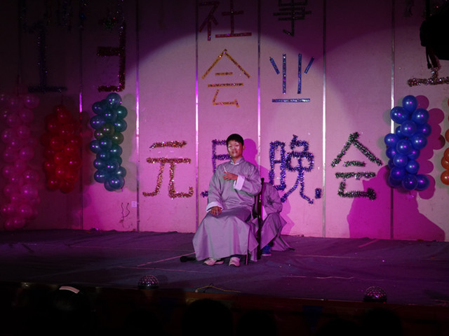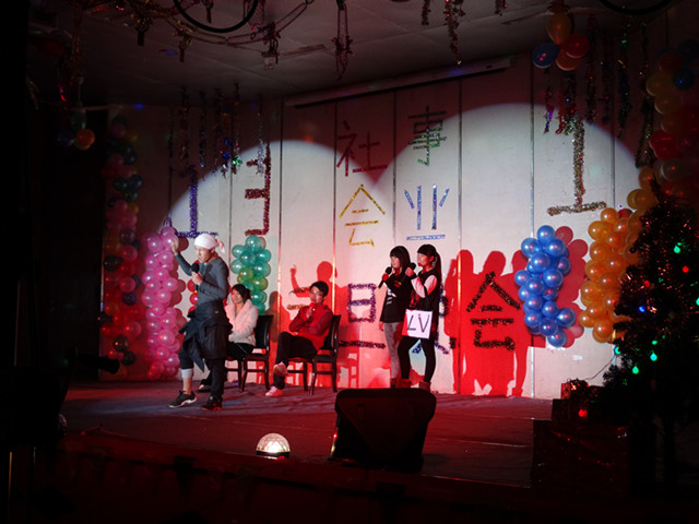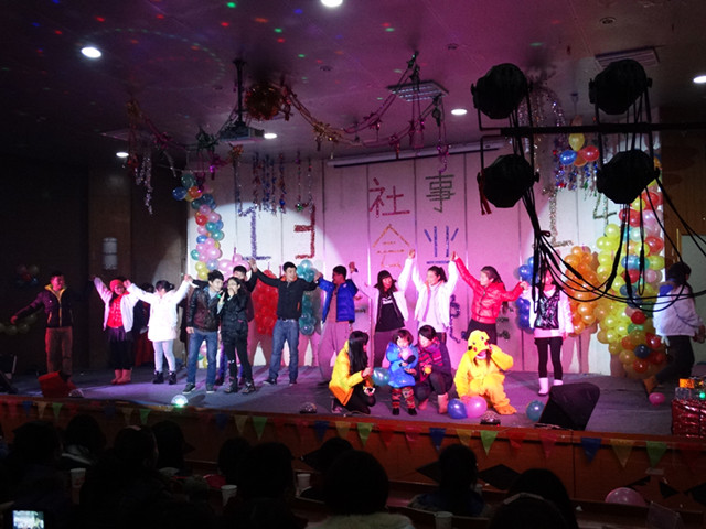 晚会在激情的乐队表演中拉开帷幕。高润霞主任做了热情扬溢的新年致辞,肯定了社会事业系2013年的各项工作,对即将到来的2014年提出了美好的期许,并代表老师们将美好的祝福送给全体师生。晚会持续两个多小时,节目内容丰富多样,精彩纷呈。其中有优雅唯美的爵士舞,刚劲有力的双节棍表演,还有令人捧腹的双簧;既有饱含深情的歌曲演唱,又有富有现代气息的话剧《招聘》。充分显示了学子们的多才多艺和青春活力。在同学们的欢呼声中,几位教师带着他们可爱的宝宝登台,与同学们一起为大家献上了超萌、超可爱的表演《爸爸去哪儿了》,将整场晚会推向了高潮。伴着歌声与祝福,晚会在小合唱《精忠报国》的歌声中落幕。(文/丁 凡 图/李光寿)