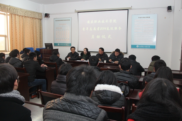 1584热线主持人小菁介绍了本次志愿服务活动的具体情况和要求。霍洁瑶同学代表全体志愿者表态发言。学生处负责同志也多角度对学生志愿者提出了要求。 本次活动在我院招募24名志愿者,主要为我院安庆城区学生,志愿者将在16日至27日在安庆火车站、安庆公路客运中心站为春运回家、返乡客流提供志愿服务。(文、图/:王晓林)