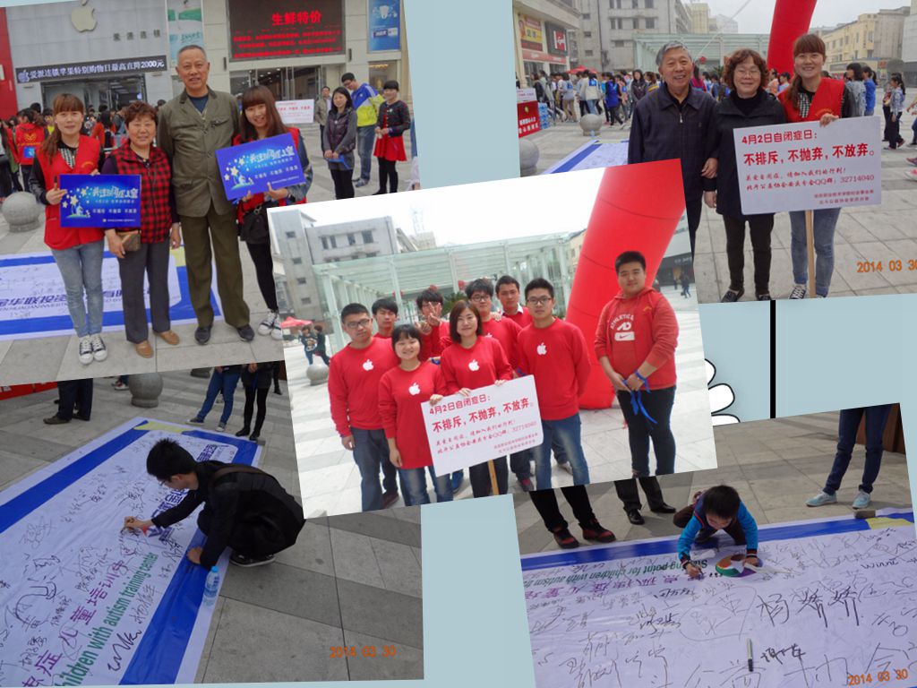 本次活动由该系志愿者征集发起,旨在通过这种特殊的方式呼吁全社会关注自闭症患儿,加深社会对自闭症儿童的了解,培育起一个有利于特殊孩子健康成长的良好的社会氛围。活动当天该系学生还在长达20余米的关爱自闭症儿童横幅上签下自己的名字,并向过往路人介绍自闭症儿童的知识,邀请路人与自闭症患儿的互动合影。 自2012年暑期起,社会事业系通过各种形式,持续开展关怀自闭症儿童活动,获得社会一致好评。本次活动,是该系设立的自闭症儿童关怀项目中的一部分,得到了安庆师范学院和安庆医药高等专科学校的大力支持,两校部分热心同学参与了活动,安庆电视台也对本次活动进行了全程拍摄并予以报道。(文/汪江红 图/于 博)