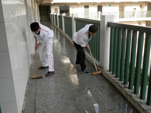 活动开始后,同学们根据分工对学生宿舍的外立面、走廊、楼梯等位置进行了认真的清扫,清除垃圾,蜘蛛网等,还在各个宿舍泼洒消毒药水,防止传染病的流行,同时进行安全大检查,排查安全隐患。