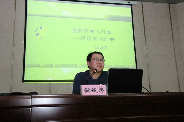 储博士从读书之苦与乐引出为什么要读书,他说,读书是安身立命之本,立身以立学为先,立学以读书为本。读书使人充实,要坚持让读书成为习惯,让读书成为我们的生活方式。他指出,读书要善于选择,做到读好书,读经典的书,“腹有诗书气自华,读书万卷始通神”,书到用时方恨少,让积累成就未来。他希望青年学生培养读书的兴趣与良好的读书习惯,提升读书的精神境界。他结合自己的切身体会,启迪我们怎样读书以及成为什么样的读书人,鼓励同学们多读书、读好书、会读书,从书中汲取营养,丰富阅历,陶冶情操,培养良好文明素养。 在轻松和谐的氛围中,大家被储博士的渊博学识所吸引,幽默风趣的语言、生动鲜活的事例、诗意激情的表达极大地调动了同学们的兴趣,不时引起会心的笑声和热烈的掌声。 |