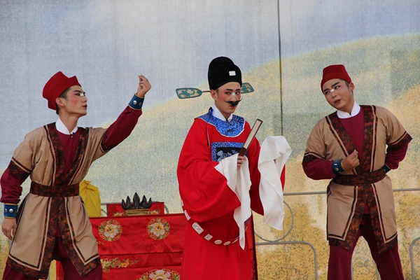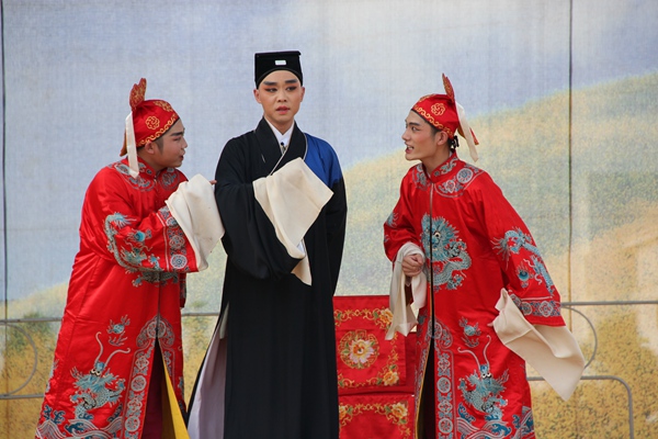 演出开始前,毕明生致欢迎辞,对安庆再芬剧院的艺术家前来我院为师生献艺表示欢迎。全院师生能够有机会聆听黄梅经典,感受徽风皖韵是一次非常难得的学习机会;“徽风皖韵”进高校活动对传承和弘扬社会主义先进文化和优秀民族文化,促进大学生健康成长起到积极作用。国家一级编剧、安徽再芬黄梅艺术基金会何成杰老师为大家讲解了黄梅戏的起源、特色、历史以及再芬艺术剧院的成长历程和国际交流情况。 演出在黄梅戏优秀传统小戏《夫妻观灯》中拉开了帷幕,诙谐风趣的表演让观众感受到浓厚的生活气息,黄梅戏经典联唱《爱歌》、《果然喜从天上降》婉转悠扬,韵味十足。传统经典唱段《戏牡丹》、《打豆腐》让人印象深刻,新编黄梅小戏《借丈夫》风趣幽默,深受欢迎。演出中,学生黄梅戏爱好者陈露露同学与国家一级演员刘国平老师共同演绎了《风尘女画家》中的经典选段――《海滩别》,获得众多老师和同学们的点赞。演出在黄梅歌《山野的风》中推向了高潮,全场师生满堂喝彩。 整场演出精彩纷呈,高潮迭起,热烈的掌声、轻松的笑声,演出现场至始至终洋溢着欢乐的气氛。师生们始终在浓浓的徽风皖韵中,充分领略了安庆地方戏曲――黄梅戏的独特魅力。(文/王晓林、葛 畅 图/王晓林)