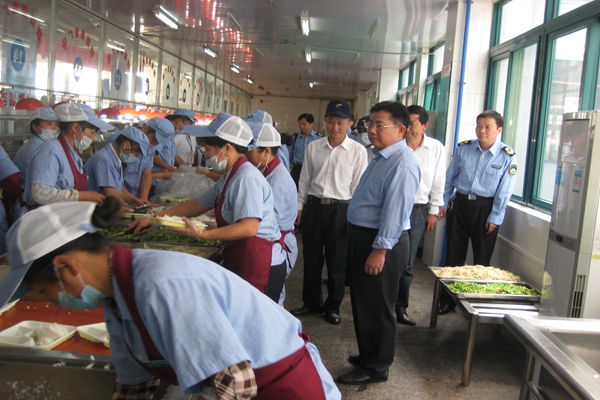 程天舒认真听取了市食品药品监督管理局驻点食品安保人员和我院食堂管理部门负责人的工作汇报,并深入到食堂的库房、操作间,详细了解食品的加工环节,细致查看饭菜的装配流程。 程天舒对我院省运会餐饮配送工作给予了充分肯定,同时他还要求我院食堂再接再厉,确保省运会食品安全,一如既往做好省运会餐饮配送工作,圆满完成餐饮配送任务。(文、图/何本祥)