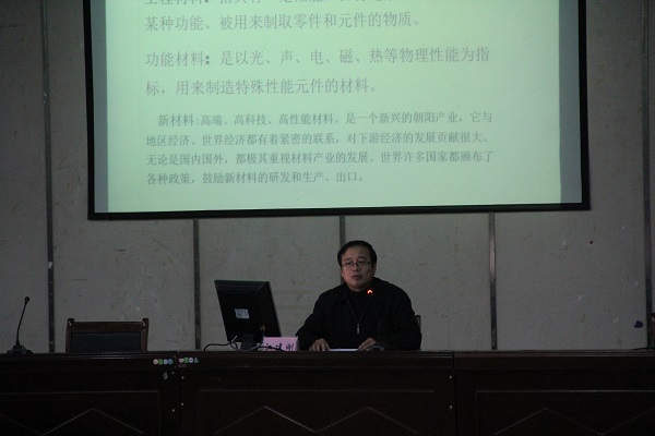 11月27日晚,机电工程系副主任、副教授江建刚在图文信息中心一楼报告厅作《机械制造中的工程材料》的专题讲座。
