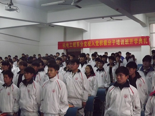典礼在威严的国歌声中正式开始。系负责人刘磊对全体学员们提出了四点希望:一要端正学习态度,严格要求自己;二是要联系实际,运用所学的理论知识思考、分析,并解决学习、工作和生活中所存在的问题,提高自身的政治素质,学以致用;三是广泛交流,深入思考,互相借鉴好的经验,取长补短,共同提高;四要脚踏实地,用实际行动争取入党。他衷心祝愿本期培训班能取得圆满成功,希望学员们以此次党校学习为新的起点,尽快的成长、成熟,早日在思想上、组织上成为合格的党员、优秀的党员。 开班仪式上,系学生分管工作负责人做了动员讲话,新生高鹏同学代表本期党校学员做了表态发言,系团总支书记对本期培训班教学和管理进行了部署。