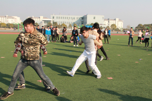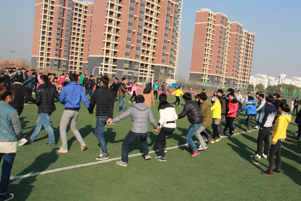 活动还没开始,体育场上就挤满了前来参加活动的同学们,个个摩拳擦掌,蓄势待发。大家的脸上都写满了笑意,热闹的场面打破了冬日的宁静,处处洋溢着火热的激情。集体游戏“爱的抱抱”挑战了大家的速度;“青蛙跳”、“保卫大战”和“正话反说”考验大家的反应能力;“头脑风暴”(谜语竞猜)展现大家的智慧;“背对背拥抱”考验大家的技巧和合作能力 。