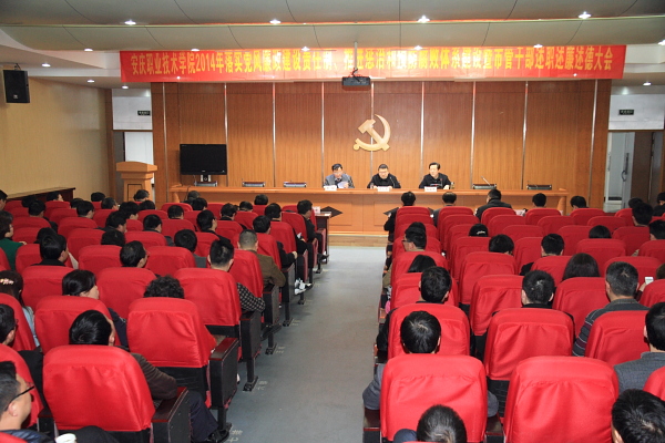 孙晓峰代表学院领导班子从十个方面进行述职述廉。一是加强理论学习,不断提高班子成员和干部队伍政治素质;二是贯彻民主集中制,进一步增强班子凝聚力战斗力;三是科学管理干部队伍,基层组织得到加强;四是深入开展群众路线教育实践活动,党风廉政建设效果明显;五是坚持监督检查,促进权力规范运行;六是全院群策群力,以优秀成绩通过省示范校验收暨人才培养工作个性评估;七是教科研能力稳步提升,职业技能大赛创新纪录;八是招生就业工作势头良好,校园环境和谐稳定;九是合作办学深度推进,社会服务能力进一步提升;十是文化育人成果彰显,学生综合素质不断提高。