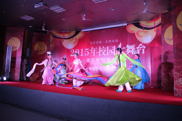 演出开始前,国家一级编剧、安徽再芬黄梅艺术基金会何成杰老师为大家讲解了黄梅戏的起源、特色、历史,介绍了著名黄梅戏表演艺术家韩再芬凭借《徽州往事》在广州摘得第27届中国戏剧梅花奖的情况。 整场演出以独具特色的传统折子戏为主,兼顾经典联唱、黄梅歌等,充分展现了浓郁的安徽地域文化特色。晚会在优美的开场舞中拉开了序幕,紧接着黄梅戏优秀传统小戏《夫妻观灯》、《闹黄府》将徽风徽韵表现得淋漓尽致,新编小戏《推车赶会》的演员们用安庆方言将地方韵味表现得维妙维肖,赢得满堂赞誉。经典剧目《白蛇传》选场《断桥》、《荆钗记》选场《投江》等精彩节目轮番上演,优美的唱词和演员完美的表演赢得现场观众的阵阵掌声,让广大师生充分领略了传统文化黄梅戏的独特魅力。特别是国家一级演员吴美莲和刘国平表演的《春香传》选段《爱歌》和《刘海戏金蟾》选段《十五的月亮为谁圆》更是将演出活动推向高潮。最后,演出在黄梅歌《山野的风》中落下帷幕。 据悉,“2015校园大舞台――徽风皖韵进高校活动”以提高大学生的审美能力和艺术素养为主线,以专业文艺院团为演出主体,为高校大学生提供免费欣赏具有安徽特色的艺术服务,目的在于为高校师生奉献一批展现徽风皖韵、关注现实生活的艺术精品,充分展示我省文化繁荣发展的丰硕成果,满足校园文化建设和学生的精神文化生活需求,激励广大师生为建设美好安徽、实现中华民族伟大复兴的“中国梦”而努力奋斗。(文/葛 畅 图/王晓林)
