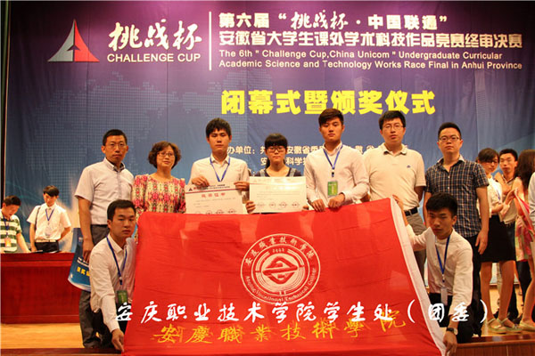 本届竞赛共有44所高校报送的138件作品进入终审决赛。评审采取PPT展示、专家问辩等形式进行。我院学子凭借出色的答辩获得了专家的认可。荣获二等奖的3项作品分别是曹青、张文剑老师指导建筑工程系张仁灏、白海翔等6位同学共同完成的《安庆城市养老公寓设计研究》,赵夫超老师指导机电工程系王世民、张帅民2位同学共同完成的《一种伸缩式观后镜》,刘冬、徐基艳老师指导园林园艺系徐健、刘玉涛等6位同学共同完成的《茯砖茶对冷藏期间酸奶的理化性质、乳酸菌数和抗氧化活性的影响》。 “挑战杯”全国大学生系列科技学术竞赛由团中央、教育部、中国科协、全国学联联合主办,分课外学术科技作品竞赛和创业计划竞赛两类,以“崇高科学、追求真知、勤奋学习、锐意创新、迎接挑战”为宗旨,每两年一届,被公认为中国大学生的“科技奥林匹克圣会”。