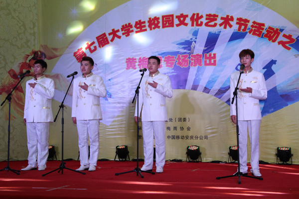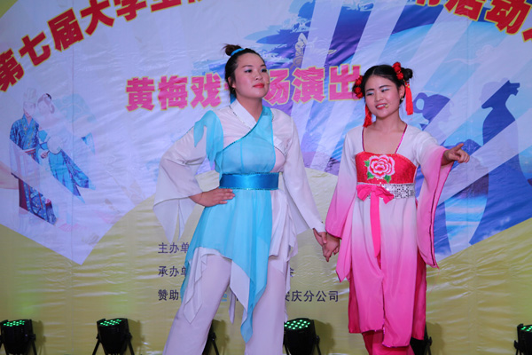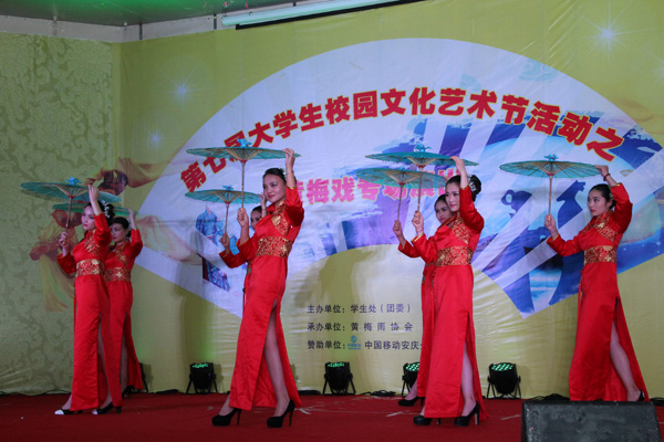 晚会在黄梅合唱团带来的经典剧目《孔雀东南飞》中拉开序幕。黄梅戏小调联唱《天女散花》、《杉木水桶》、《椅子调》以及黄梅戏对唱《对花》、《爱歌》、《满工对唱》让热闹欢乐的气氛迅速蔓延,紧接着黄梅戏独唱《到底人间欢乐多》和气清意远的民乐表演《茉莉花》、《战台风》和《洞庭新歌》节目将活动推向了高潮。此后,极富古典之美的《惊鸿舞》、旗袍走秀《江南雨》、新编传统歌曲《黄梅戏》等精彩节目轮番上演,给观众带来了视听上的极致享受。最后,伴随着经典黄梅戏《女驸马》曲目“为救李郎离家园,谁料皇榜中状元”的旋律响起,整场演出划上了圆满的句号。 自2009年以来,我院已经连续举办了六届大学生校园文化艺术节,文化艺术节已成为学院各学生团体相互交流的重要载体和文化品牌,凸显了“实践与理论并重,技术与人文融通”的办学理念和地方文化育人特色。(文/葛畅 图/王晓林)