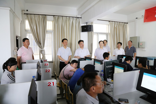 | 6月28日下午,副市长黄杰在院长孙晓峰,市残联理事长童宏葵、副院长毕明生的陪同下,看望了正在参加2015年全市残疾人电子商务培训班的学员。