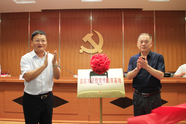 王进首先致辞,对省市人民银行的各位领导、各位来宾表示热烈欢迎,对学院与中国人民银行安庆市中心支行合作建设“安庆市征信教育宣传基地”表示祝贺。他指出,“征信”从国家层面而言,是社会信用体系建设的重要内容,它创新了社会管理的手段和方式,党的十八届三中全会提出“建立健全社会征信体系,褒扬诚信,惩戒失信”;从个人层面而言,征信对每一个人、每一个经济主体的交易行为都有着直接且重要的影响,信用报告更是被视为企业和个人的“经济身份证”。培养“有理想、有道德、有文化、有纪律”高素质的人才是学院发展的关键,是学院建设的一项战略性任务。加强银行与学院的合作,在我院建设“安庆市征信宣传教育基地”,以及开设《现代征信学》选修课,旨在提高大学生对征信的认识,使征信宣传教育得到更加有效的开展,促进校园诚信文化建设,以利更好地培养出讲信用、懂知识、有智慧、负责任、敢担当的大学生,成为社会诚信的重要建设力量。 傅德汉行长详细介绍了征信的概念及征信业相关信息,并希望我院师生能够进一步增强信用观念和意识,为提升我国整体信用水平贡献力量。 高克州处长希望市人行和学院要高度重视,精心组织落实好《现代征信学》课程的选修和教学工作,鼓励感兴趣的同学积极选修该课程。讲授《现代征信学》的老师要认真研读,深刻领会,力求广视角、多维度地传授征信学知识;选修《现代征信学》的同学们要珍惜机会,努力学习,注重积累个人信用财富。 王进与高克州共同为“安庆市征信宣传教育基地”牌匾揭幕。