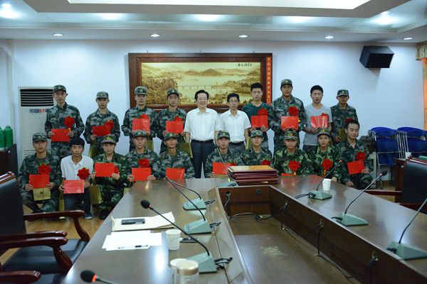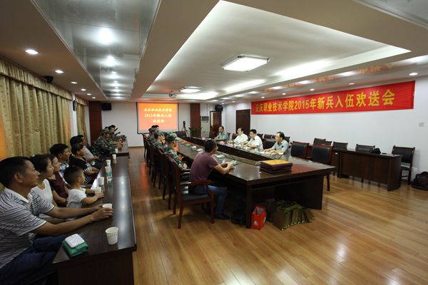 会上,学生处负责人宣读了2015年入伍新兵学生名单,院领导为入伍新兵颁发了入伍通知书和纪念品,为新兵家长(部分)颁发“光荣之家”牌匾。新兵代表陈林同学和新兵家长代表袁先生先后发言。会后,院领导与入伍新兵及家长在行政楼前广场合影留念。