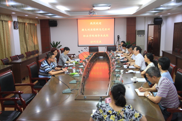 Maree Gerke女士对我院的教育教学成果和完善的实验实训设施给予了高度赞誉,并充分肯定了我院的办学成果。她介绍了塔斯马尼亚州职业学院概况和特色,并就我院学生赴塔斯马尼亚职业学院留学的合作模式、赴澳的语言要求、职业资格证书的获取、学历提升、就业情况、学费和生活费用以及师资培训等事项和我院领导进行了具体商谈并达成了初步意向。