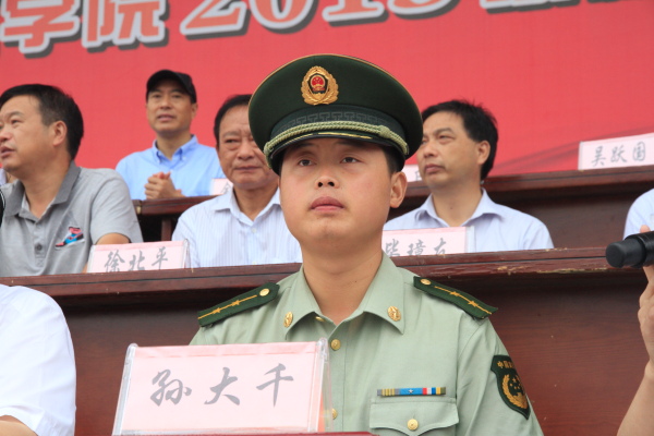 武警带队干部孙大千勉励同学们要把军训中表现出的顽强拼搏、严守纪律等优良作风带到学习生活中去,勤奋学习、努力工作、奋发图强、勇攀高峰。