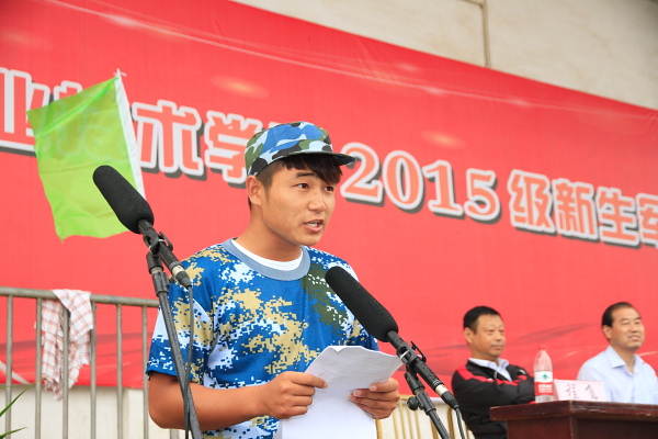 机电工程系李干同学代表2015级新生军训学员作了发言。