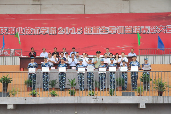 昂扬斗志振人心,英姿飒爽好风采。25号上午,我院2015级新生军训总结表彰大会在院田径场隆重举行。院领导王进、孙晓峰、施运华、毕明生、方天祜、谭维奇,武警安庆市支队军训带队干部孙大千出席。副院长毕明生主持大会。各系部、处室、中心负责同志参加大会。