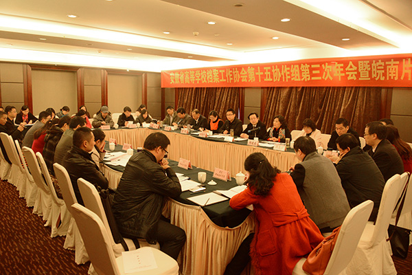 我院院长孙晓峰教授到会致欢迎辞。省档案局标准化建设处副处长汪海峰,省教育厅办公室副主任胡晓云、安庆市档案局副局长何成到会并讲话。安徽师范大学、安徽工业大学、安徽工程大学、安庆师范学院、皖南医学院、黄山学院、铜陵学院、池州学院、安徽中医药高等专科学校、安徽商贸职业技术学院、安徽机电职业技术学院、芜湖职业技术学院、铜陵职业技术学院、池州职业技术学院、安庆医药高等专科学校等皖南片高校档案工作负责同志到会交流。
