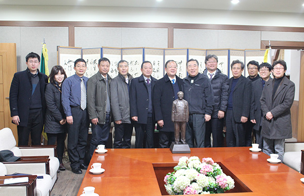 在韩瑞大学访问期间,咸基善校长热情会见了我院考察团并进行了友好会谈。会见时,谭维奇副院长向咸基善校长赠送我院曹尚松老师的国画艺术作品。咸基善校长高度评价了我院老师的艺术作品并对我院师生表达了美好祝愿。双方对履行中韩合作办学协议和留学生派遣等具体事项进行了磋商与交流,对现有三届中韩班“3+2”专升本人才培养状况进行了评估,对推进“3+2+1”专本硕连读中外合作人才培养进行了研讨,并就进一步深化合作、密切师生交流交换了意见。为了做好明年3月份2013级中韩班学生留学该校,考察团对韩瑞大学国际交流中心、学生食堂、宿舍、教学场所、图书馆、博物馆等进行全方面实地调研并观摩了课堂教学。