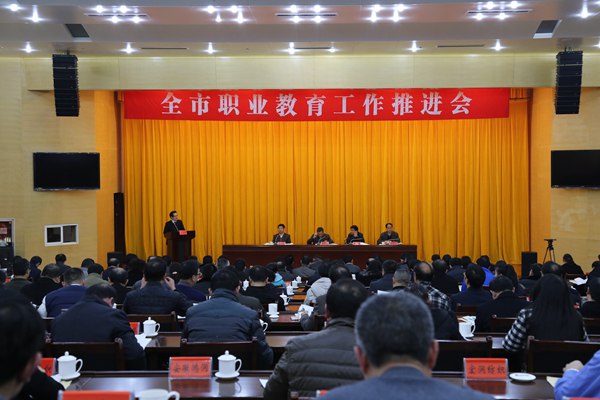会议出台了安庆市政府《关于加快发展现代职业教育的实施意见》,陈冰冰在解读文件中指出,这是一个事关为“十三五”加快调结构转方式促升级、实现“四个强市”目标提供高素质劳动者和技术技能人才支撑的纲领性文件,各地各部门要充分认识加快发展地方职业教育的重要性和必要性,做到一手抓院校建设,一手抓校企合作,大力实施品牌工程,调整专业结构,实施教师提升工程。要积极支持各类办学形式,完善校企合作体制机制,营造职业教育良好发展环境。黄杰代表市政府作题为《把握新形势适应新常态,推动安庆职业教育创新发展》的工作报告。