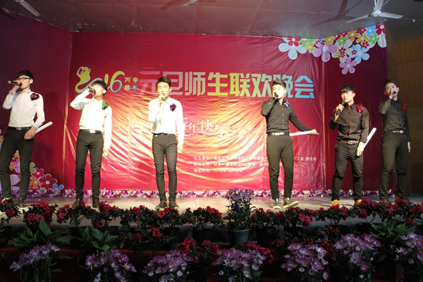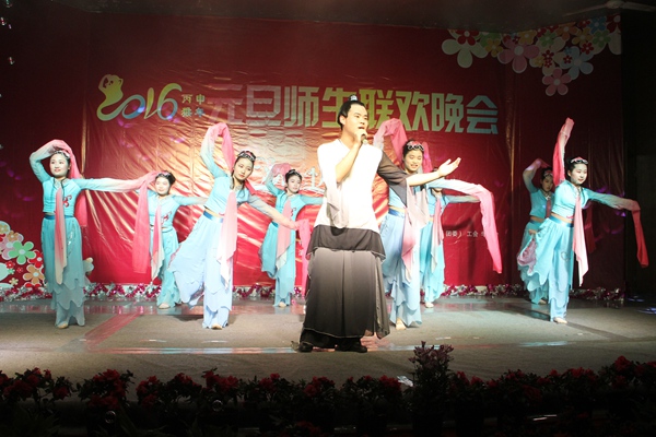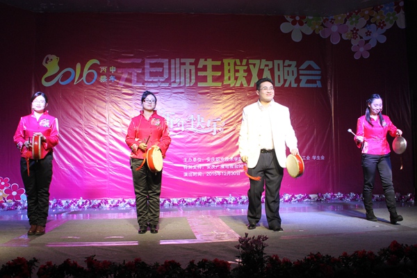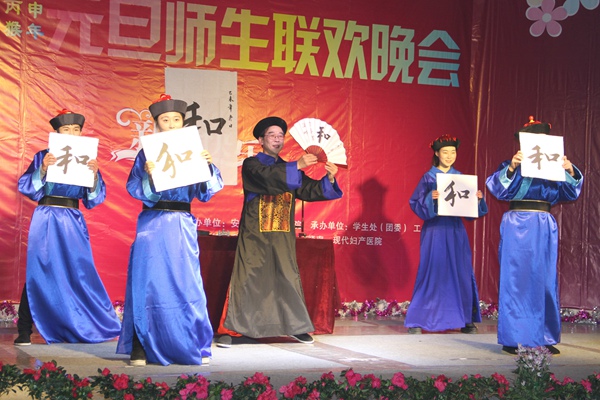 晚会在喜气洋洋动感十足的《贺新年》歌声中拉开帷幕。本次晚会以“秀我风采、精彩有你”为主题,以歌舞、相声、戏曲、魔术、朗诵、武术等多样的节目形式深情演绎展示出我院师生蓬勃焕发的青春风采,描绘出广大师生齐心协力共同寻梦,携手共创学院及自身美好未来的坚定信心。魔术与拉丁的曼妙结合让观众在沉醉舞蹈的过程中见证奇迹;诙谐幽默的相声表演《新闻晚知道》、《我的大学生活》令观众捧腹大笑掌声不断;扣人心弦的民谣《南山南》、动感十足的流行歌曲《突然想起你》、优柔华美的舞蹈《青衣》、《凌波水生烟》、《将爱》,饱含深情的朗诵《那些年》让观众不停叫好,赢得阵阵掌声;冯丰、王兆明两位老师深情演绎的《绿叶对根的情意》掀起了晚会的高潮;辅导员代表孙晨、周雷、徐辉、朱小小以三句半的形式,用轻松又不乏真实的语言描绘了辅导员生活的点点滴滴,让同学们在为辅导员精彩表现喝彩的同时又理解他们的辛苦和付出;工会章杰义老师和学生联袂表演的黄梅戏《普天同乐一个“和”》,展现了传统戏曲的魅力以及安庆地方文化的独特韵味;融入浓厚中国元素的茶艺旗袍表演《太湖美》,展现了我院学生良好的艺术修养和扎实的专业素质;铿锵有力刚柔并济的武术表演不仅让大家看到武术强身健体的作用,更是展现出坚忍不拔的武术精神。