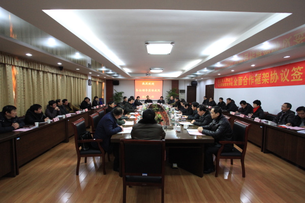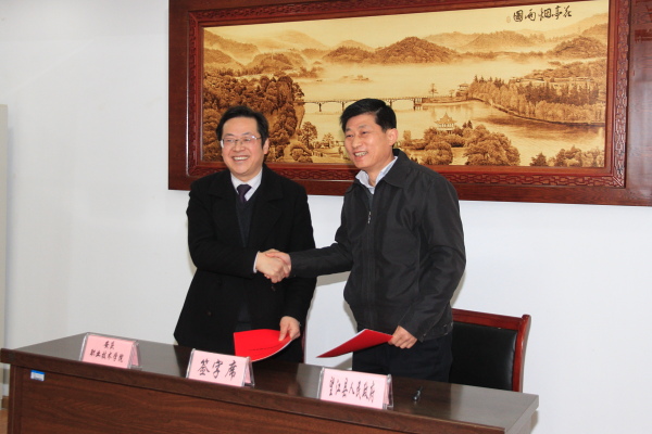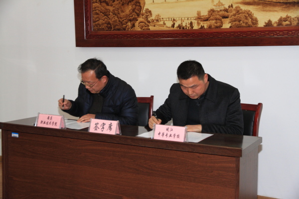 皖江中等专业学校董事长吴灿、望江县职教中心主任廖恒分别与我院副院长谭维奇签订了合作办学协议。