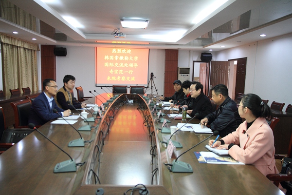 孙晓峰介绍了我院办学基本情况和对外合作交流工作。他指出,我院高度重视对外合作与交流,加大开放合作力度也是我院建设地方技能型高水平大学的需要。我院将选择与对方的优势、特色专业合作,对韩合作实行错位发展与差异发展。双方就特色专业探讨了合作可能性,并深入交流了3+2项目和2+2项目等具体事项。最后,双方对两校签订框架合作协议达成了一致意见。 院教务处、招生就业处、国际交流中心负责同志及相关人员参加了会谈。 韩国拿撒勒大学位于韩国首尔南部的天安市,创建于1954年,是经过中国教育部认证的大学,该校留学生能同时获得全球53所拿撒勒大学的姊妹大学的学分互认。 |