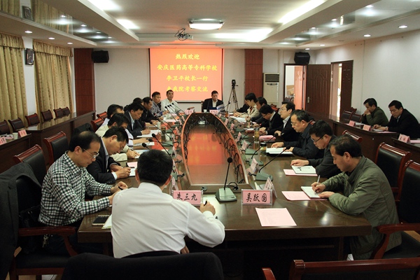 两校领导就地方技能型高水平大学建设、安徽高职院校个性化评估、学生管理、校园基本建设及环境治理、校园安全稳定等工作进行了深入交流。双方表示,要进一步密切交流,深化合作,为安庆高等教育发展和地方经济社会建设做出新的贡献。 两校办公室、组织人事处、监察审计处、工会、教务处、学生处、总务处、财务处、保卫处、图文中心负责同志进行了对口交流。