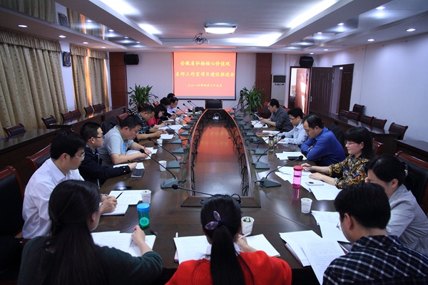 会上,工作室首席专家孙晓峰、王瑞兰老师分别汇报了思政课名师工作室与大学生就业导航工作室建设进展情况以及下一阶段主要建设任务。与会人员对两个工作室下一阶段工作进行了深入地研讨。思政部和学生处负责人分别从各自部门工作层面对工作室建设提出了指导性意见。 毕明生指出,名师工作室项目建设为我院思政课教师与辅导员提供了良好的提升平台,各工作室成员要强化项目意识、参与意识与结合意识,时刻关注项目建设,积极参与项目建设,并将项目建设工作与自己平时的实际工作相结合,推动我院思政教育教学资源整合,实现部门工作联动。要注重发挥工作室的示范引领作用、注重工作室团队建设、注重建设成果总结提炼,通过项目建设打造思政课教师与辅导员创新团队,提高我院思政教育教学水平和效果,更好服务大学生成长成才。 |