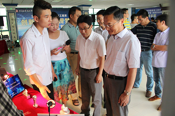 观展过程中, 各个项目的参赛选手和指导老师向来参观的老师、同学热情的介绍着自己的作品,从保虑等同学现场展示了自己制作的抢答器、交通信号灯、人体感应器、心型跑马灯等,院领导们也饶有兴趣的观看每一位选手的作品,对作品进行了详细询问,从工艺性、先进性、科学性、实用性等方面对作品进行综合考察,并对办好科技展提出了指导意见。现场气氛热烈,科学研讨氛围浓厚。院领导们对机电系学生们扎实的专业基础和熟练的专业技能表示肯定,并鼓励同学们继续努力,勇攀科学高峰,为中国向制造大国向制造强国转变,为中国智造2025贡献自己的一份力量。 此次活动的评审还采用了微信投票的方式进行,每位同学可以关注机电工程系微信公众号为喜欢的作品进行评选,观展同学们也积极地为自己喜欢的团队作品点赞。 此次科技展是今年我院校园文化艺术节的首场专业作品展览,此次科技展激发了了同学们对科技制作的热心,增强了同学们继续研究的信心,让同学们体验到了科学的魅力,收获到了不一样的精彩。 (文/李承鹏、杨梦丽;图/王晓林、孙昆鹏) |