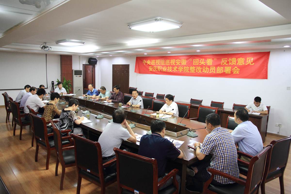 6月20日上午,我院在第二会议室召开中央巡视组巡视安徽“回头看”反馈意见安庆职业技术学院整改动员部署会。党委书记王进主持会议并讲话。副院长施运华、毕明生,纪委书记方天祜,副院长占峰、谭维奇出席会议。