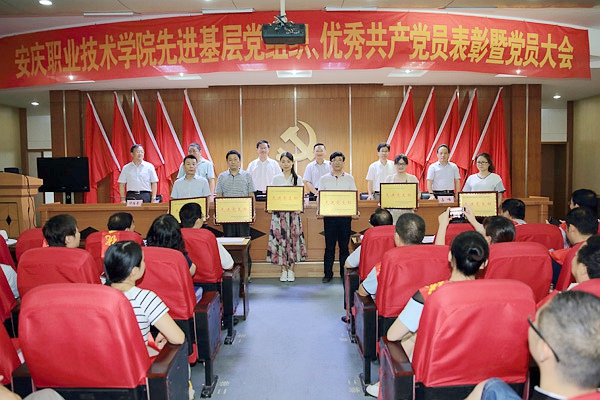 方天祜宣读表彰决定,公共基础部党总支和机关党总支第四党支部等13个总支、支部喜获先进基层党组织荣誉称号,黄勤等28人被评为优秀共产党员。院领导为获奖党组织代表和优秀党员颁发了奖牌和证书,会场里掌声经久不息,气氛隆重热烈。