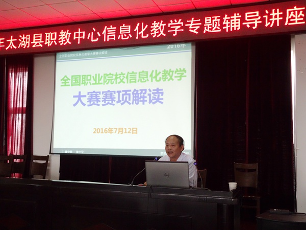 7月12日,学院教务处和安庆职教联盟秘书处组织精干团队为太湖县职教中心100多位教师开展信息化教学及大赛培训。讲师团由电子信息系方莉副教授领衔,相关专业教师参与。培训持续近4个小时,较好地完成了既定任务。