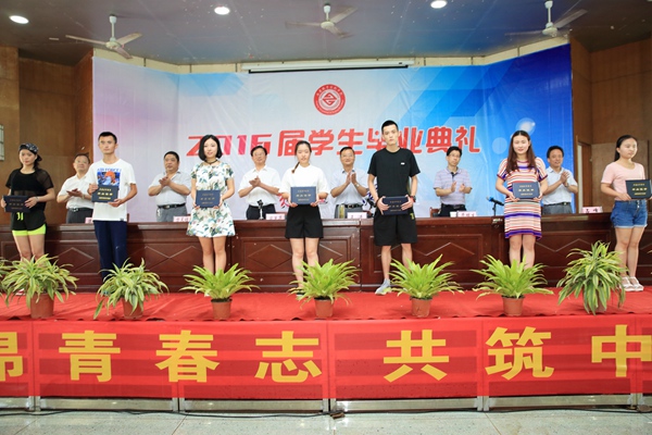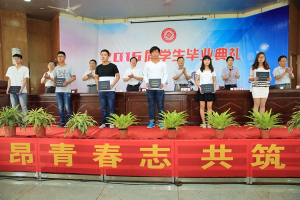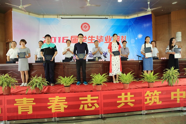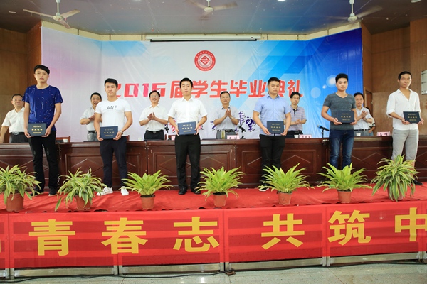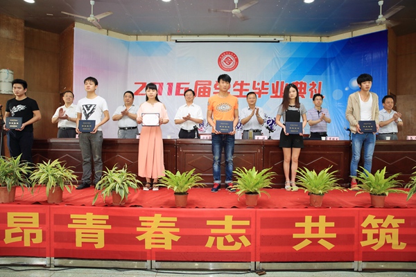 王进强调,三年来同学们的不断成长,在秦潭湖畔的这些点点滴滴,都已经浸润进我们的校园,成为校园的生命组成,成为万名师生共同的美好记忆;三年来在全体师生的共同努力下,学院以优秀等次通过个性评估和示范校建设验收,顺利获批地方技能型高水平大学建设院校立项,荣获省高校大学生创新创业示范校称号,一个个成绩创造了学院发展的辉煌。 王进指出,三年来有许多同学的优秀表现让我们感动,青春安职,魅力秦潭,校园因为同学们而更有活力,更加精彩。他深情地指出,学院还有很多办学条件需要完善,学院正在努力解决。在这挥手告别之际,希望同学们能够理解、谅解、宽容。 王进希望,在毕业生即将踏入社会,开始人生历练之际,要做好以下三点。第一,要做好人生规划,在不断学习中勇往直前。要独立谋划,自我管理。要勤于学习,善于学习,在学习中塑造自己,在学习中积淀提升,勇往直前。第二,要培育工匠精神,在不断追求中超越提升。作为高职院校的毕业生来说,工匠精神就是专心、专注、专业,工匠精神就是精心、精准、精湛,工匠精神就是严格、严厉、严谨。要不断超越自己,提升自己。第三,要坚持脚踏实地,在不断创造中实现价值。要着眼长远目标和远大理想,发扬敢干、敢为、敢担当的青春本色,致力于创新、创业、创造的实践。要积极主动,乐观向上,勇敢坚强,把责任变成事业,把目标变成现实。要脚踏实地、勇于担当,在不懈奋斗中实现自己的人生价值。 副院长毕明生宣读了《关于表彰省级品学兼优毕业生的决定》的文件,院领导向优秀毕业生代表颁发毕业证书并合影留念。