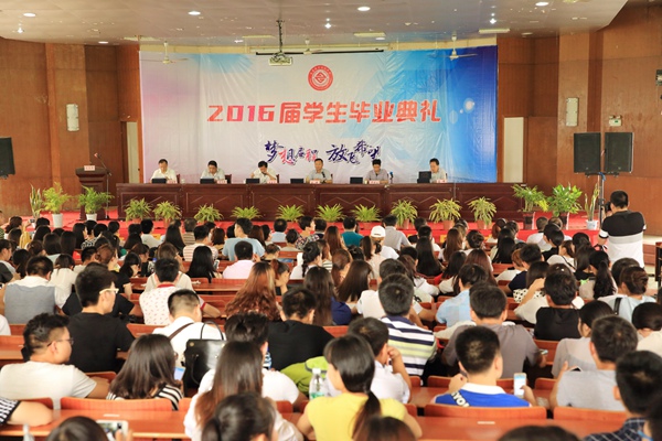 雨露滋润笑春秋,桃李芬芳满天下。7月15日上午,我院2016届毕业典礼在图文信息中心一楼报告厅隆重举行。院党委书记王进出席典礼并致辞。院领导施运华、毕明生、方天祜、占峰、谭维奇出席毕业典礼。各处室、系部负责人、团总支书记、毕业班辅导员和班主任、2016届毕业生代表共600余名师生参加典礼。毕业典礼由副院长施运华主持。