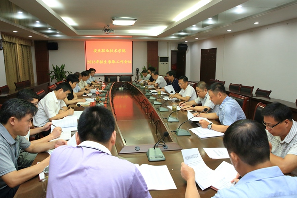 日前,我院招生录取工作已全面展开。 2016年我院共计划招收普通高职生3917人,其中分类考试招生已录取1577人;计划招收普通高考学生2340人、五年一贯制学生260人。为做好今年的招生工作,学院专门成立了由院党委书记王进任组长,副院长施运华、院纪委书记方天祜、副院长谭维奇任副组长,有关部门(单位)负责人为成员的招生录取工作领导小组。领导小组办公室内设计划管理与录取材料组、网络录取组、网络保障组、宣传及后勤组、纪检与安全组,分别负责各相关具体工作。 7月19日上午,我院在行政楼四楼会议室召开2016年招生录取工作专题会议。王进、施运华、方天祜、谭维奇出席会议。院招生录取工作领导小组成员、招生就业处及全体招录工作人员参加了会议。