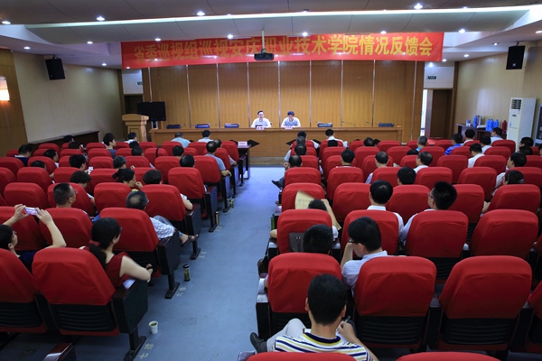 在巡视情况反馈会上,丁邦亮代表巡视组向学院反馈巡视情况,指出了巡视发现的主要问题:学院党委抓党风廉政建设不到位;纪委在廉政教育和监督检查方面缺乏主动性、有效性;重业务轻党建现象明显;基建工程项目和招投标存在廉洁风险;财务管理不规范;执行民主集中制不够严格;内聘教师和临时用工招聘管理不够规范;“三重一大”相关规定执行不力;执行中央八项规定不够严格。