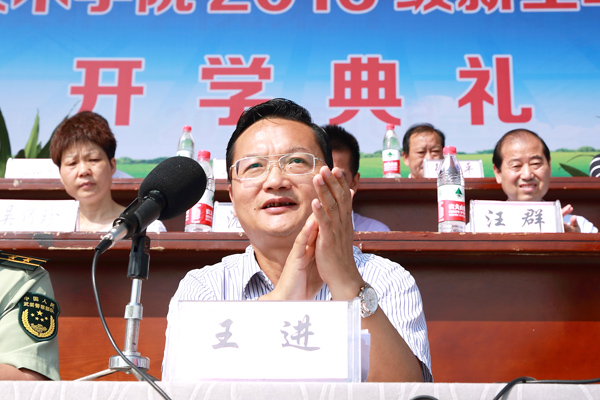 王进向全体新同学的到来表示诚挚的祝贺和热烈的欢迎,祝贺同学们踏上人生新的征程。他介绍了安庆悠久的历史文化和学院基本情况,并对新生们提出几点希望。一要刻苦训练,锤炼意志,把军训作为砥砺品格、磨练意志、提升自我的一次大好机会。二要勤学笃行,增长知识才干,努力学习专业技能,成为具有大国工匠精神的高素质应用型技能型人才。三要心怀梦想,把握青春时光,做时间、梦想和人生的主人,既要把自己的青春梦想和中华民族伟大复兴的中国梦结合起来,更要把自己的人生理想融入国家和民族的建设中,实现人生价值。