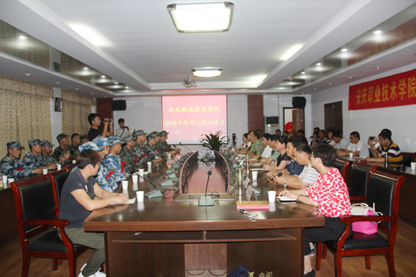 9月12日下午,我院举行2016年大学生新兵入伍欢送会。党委委员、副院长毕明生,迎江区委常委、人武部政委钱志宏出席。从院校地迎江区入伍的19名新兵及其家长、各系党总支副书记和征兵专管老师参加了欢送会。