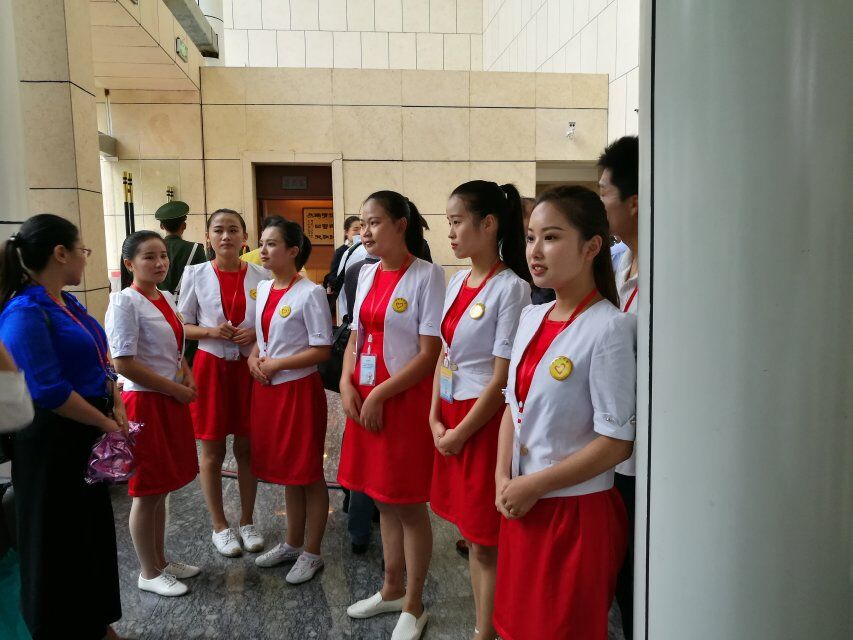 9月初,在院团委的组织下,经安庆团市委、艺术节筹委会精心选拔,我院刘梦晴等20名同学成为本次黄梅戏艺术节青年志愿者。两周时间里,同学们利用课余时间,接受志愿服务前的强化培训。他们认真学习安徽省情、安庆市情、礼仪知识,熟悉各大酒店环境,熟悉安庆主要交通路线,沿道的标志建筑、景点等,练习讲解、实地演练,为后面的志愿服务工作夯实了基础。 9月28日,我院志愿者分赴安庆大酒店、黄梅戏艺术中心,分别从事政务解说和迎宾接待工作。6名参加政务解说的志愿者在前往会场的大巴上向来宾热情地讲解安庆市情,展示安庆人民的好客之情;会场接待的同学们,有序引导来宾到指定场地;返回途中他们高举车牌,等待来宾,为来宾解答疑问。他们以自己的行动传递出安庆人民的热情好客,讲述着安庆的风土人情。