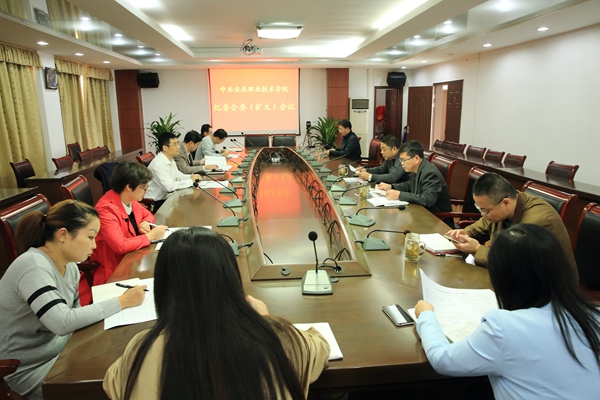 10月11日,院纪委召开全委扩大会,学习《中国共产党问责条例》和安庆市第十一次党代会精神。院纪委书记方天祜出席会议并讲话。院纪委委员、各党总支(直属党支部)纪检委员、监察审计处人员参加了会议。