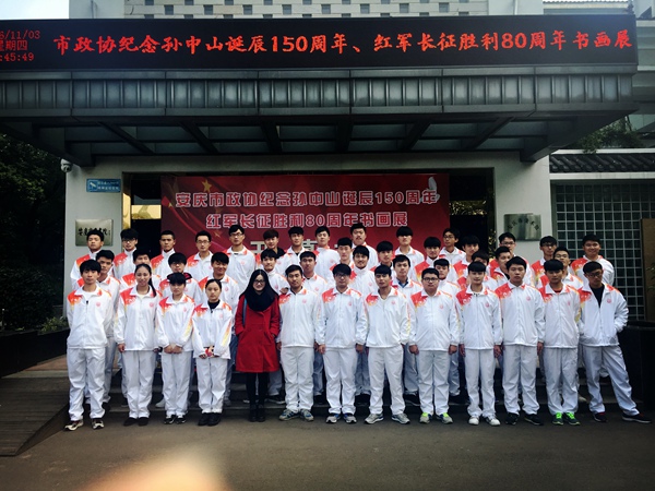 11月3日,由安庆市政协文史委、民革安庆市委员会、政协书画院、市美协、书协、美术馆联合举办的“纪念孙中山先生诞辰150周年红军长征胜利80周年书画展”活动在安庆市美术馆隆重举行。市政协主席张金锐出席活动并讲话。我院团委、思政部师生50余人参加开幕式活动。